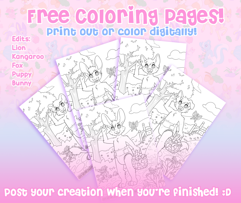 Cute Easter egg hunting coloring page! Print out and color with your favorite medium or color digitally!